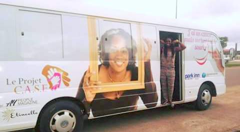 Après la campagne virale sur le net, un bus brandé aux couleurs du projet CASE a circulé dans les rues de Libreville à la recherche des sourires mais aussi pour accompagner chaque jour les malades à Phénix communication, le partenaire du projet chargé de les relooker.
